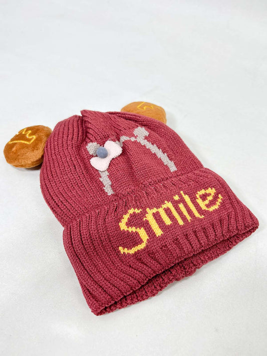 Smile Burgundy Beanie Winter Cap For Kids BWC37