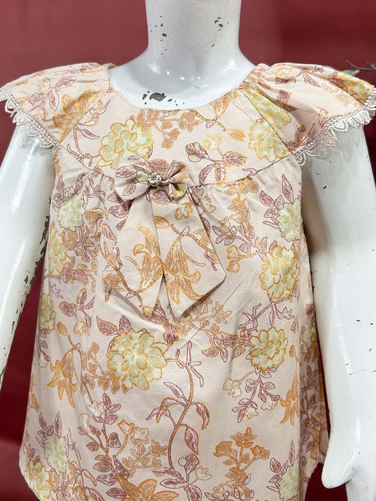 2Yrs - 5Yrs Beige Floral Frock For Girls GF36