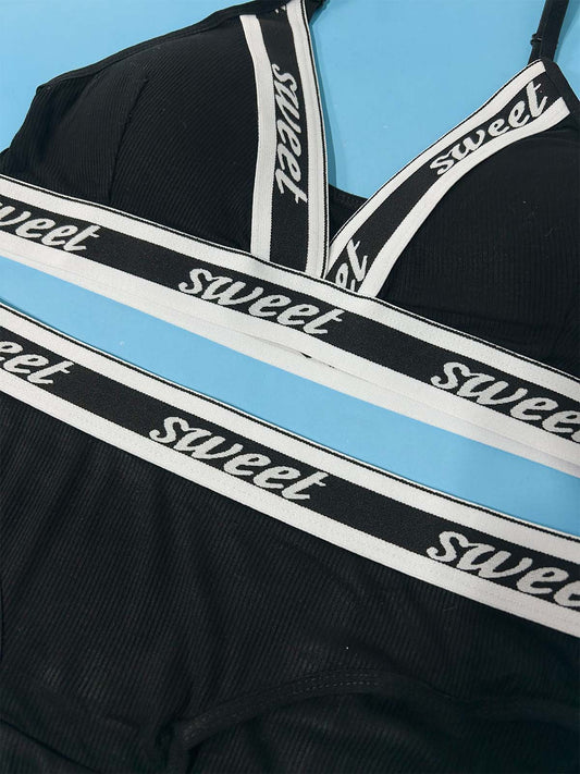 Seamless Black Padded Bra Panty Set for Girls and Women LB59