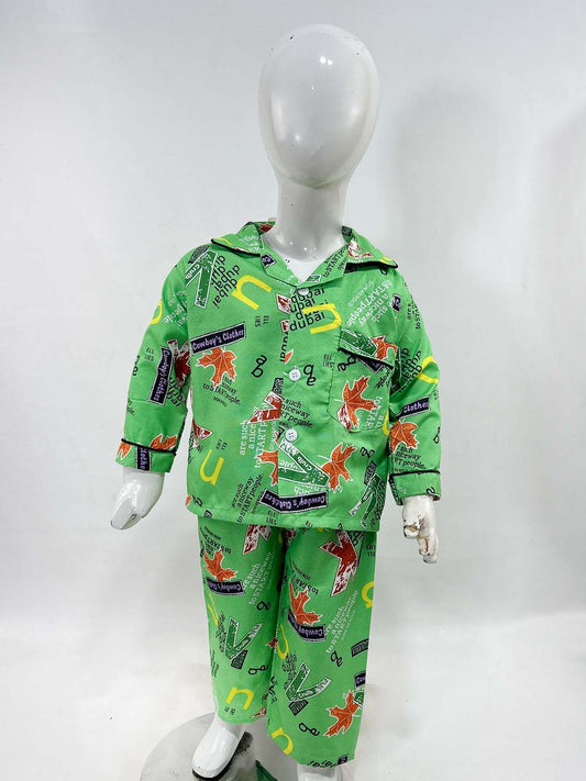 1Yrs - 5Yrs Green Cotton Night Suit For Kids NG BNS22