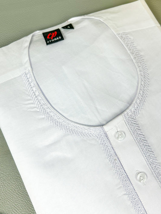 Neel White 100% Cotton Magsi Collar Kurta for Men MK12