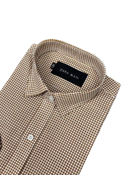ZS Men's Formal Dress Shirt Light Brown Checks MFS413
