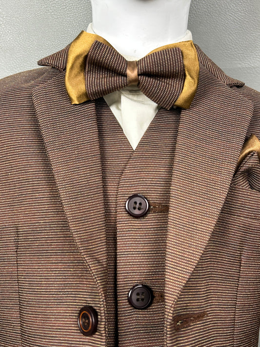 6Mth - 14Yrs Brown Line 5Pcs Coat Pant Suit for Boys BCP30