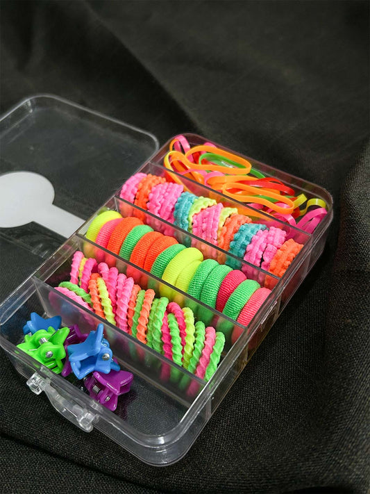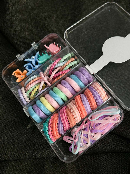 Colorful Hair Pony and Rubber Bands Set With Organizer Box GHB32