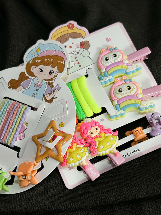 Pack Of 28 Colorful Pony and Hair Clips Set For Girls GHB44