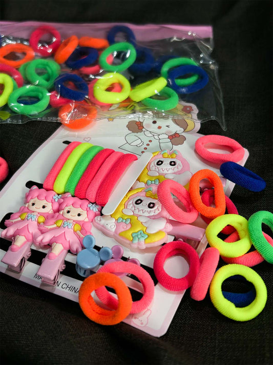 Pack Of 60 Colorful Pony and Hair Clips Set For Girls GHB30