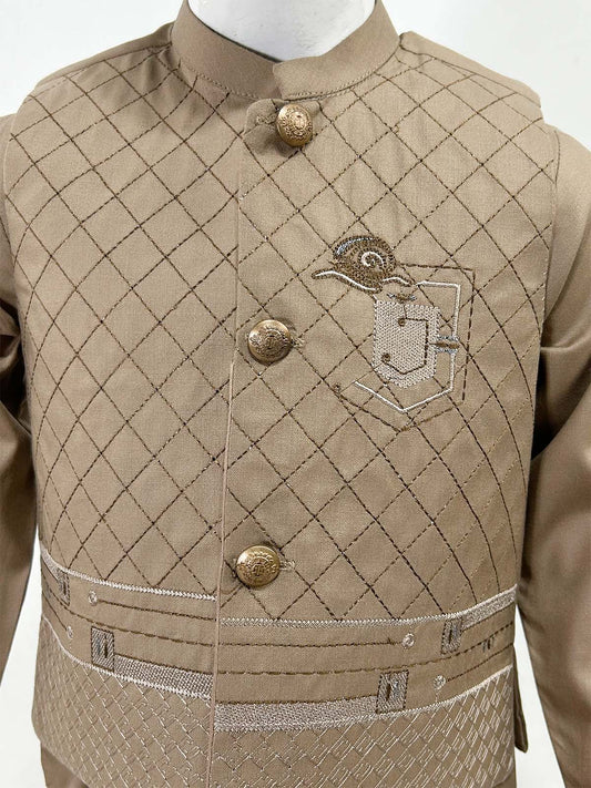 1Yrs - 11Yrs Bronze Kameez Shalwar with Waistcoat For Boys AM BKS157