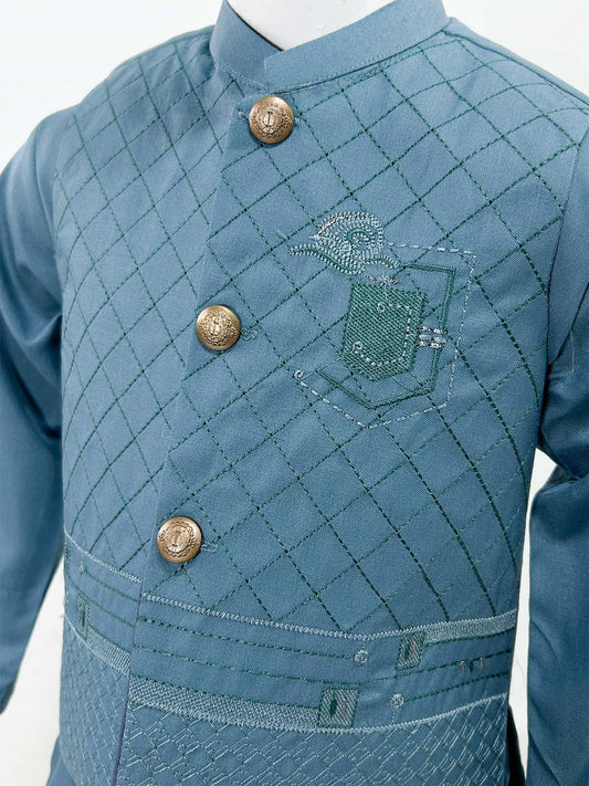 1Yrs - 11Yrs Blue Kameez Shalwar with Waistcoat For Boys AM BKS158