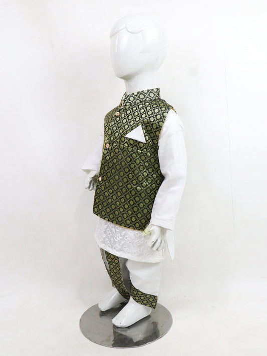 5Yrs - 11Yrs Green Kurta Pajama with Waistcoat For Boys AM BKS78