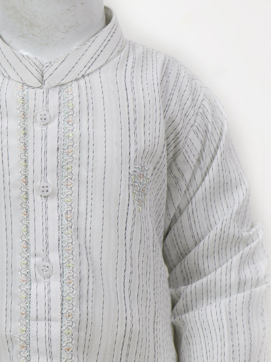 BKS21 TG Boys Shalwar Kameez Suit 2Yrs - 14Yrs White Black Lines