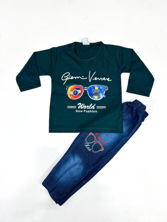 1Yr - 4Yrs Kids Suit Printed Gogal Style Dark Green RZ BS435