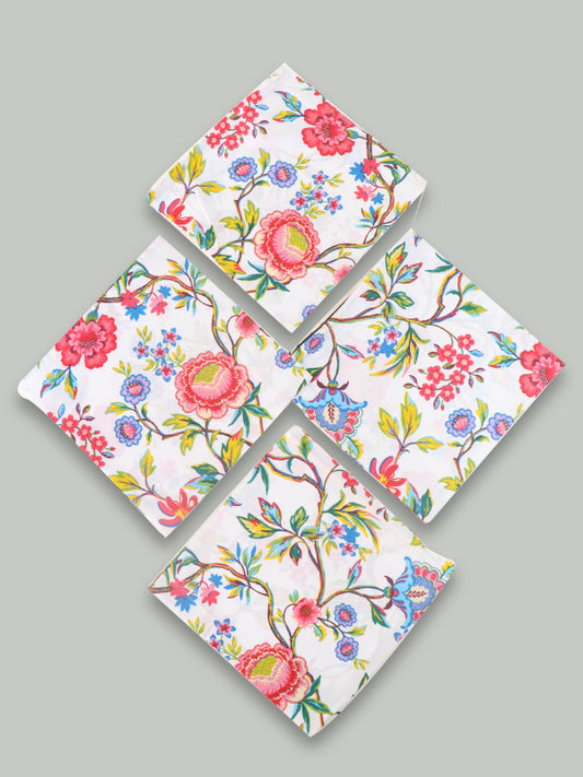 White Floral Pack Of 4 Cotton Pillow/Cushion Cover 15" x 15"