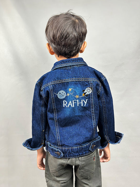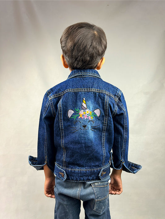 6Mth- 8Yrs Unicorn Faded Dark Blue Denim Jacket For Kids KJ17