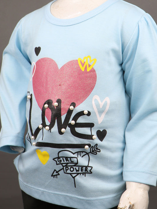 1Yrs - 7Yrs Love Light Blue T-Shirt For Girls TG GTS19