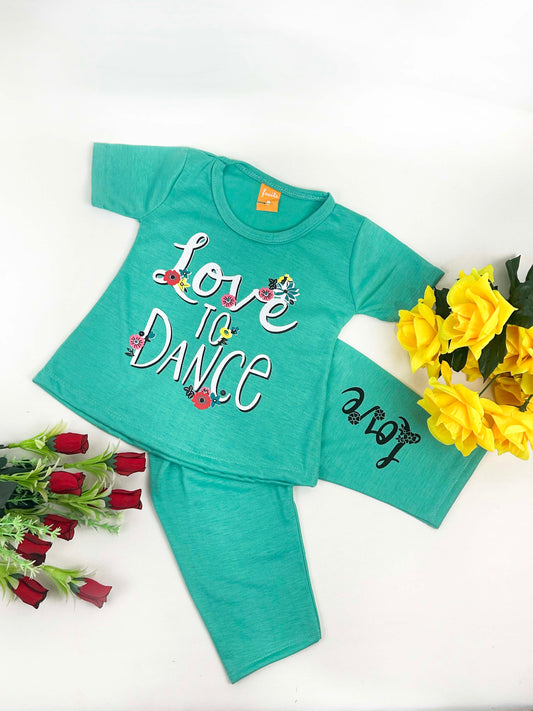 1Yrs - 5Yrs Green Cotton Night Suit For Girls NG GNS11