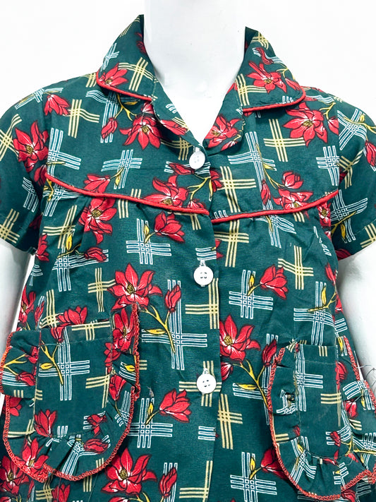1Yrs - 5Yrs Green Cotton Night Suit For Girls NG GNS17