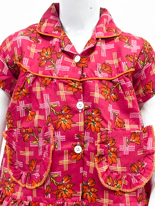 1Yrs - 5Yrs Red Cotton Night Suit For Girls NG GNS13