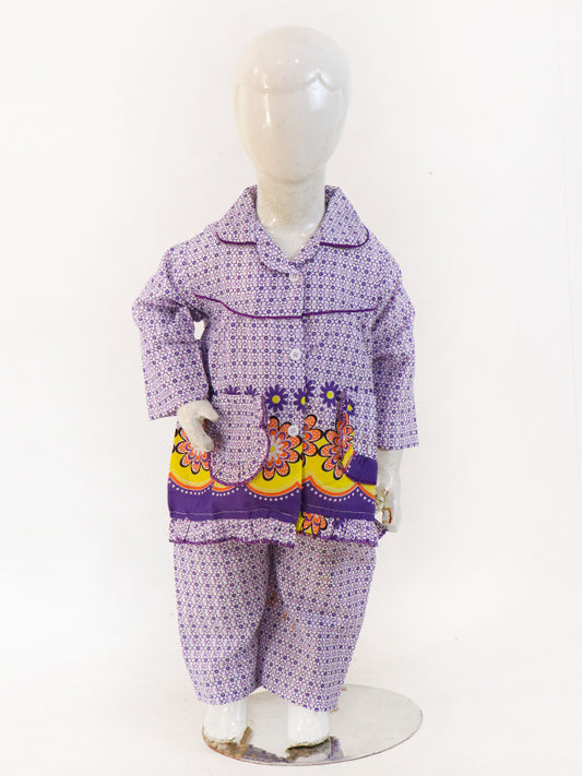1Yrs - 5Yrs Purple Flower Full Sleeves Cotton Night Suit For Girls NG GNS04