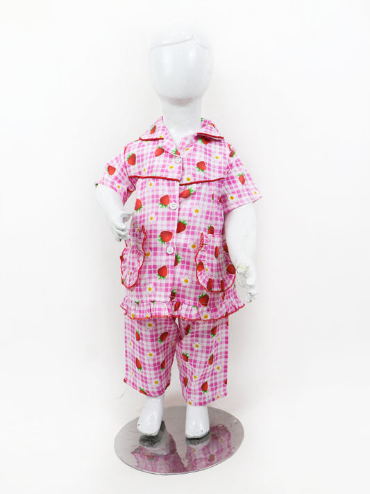 GNS01 NG Girls Cotton Night Suit 1Yrs - 5Yrs Strawberry Pink