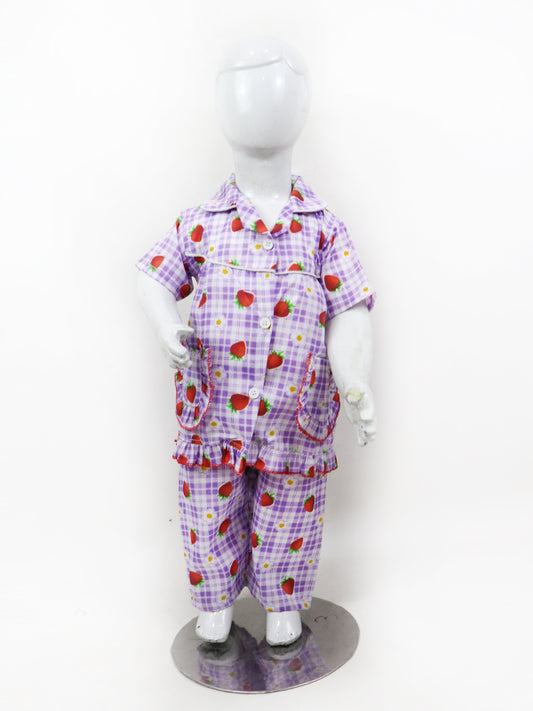 GNS01 NG Girls Cotton Night Suit 1Yrs - 5Yrs Strawberry Purple