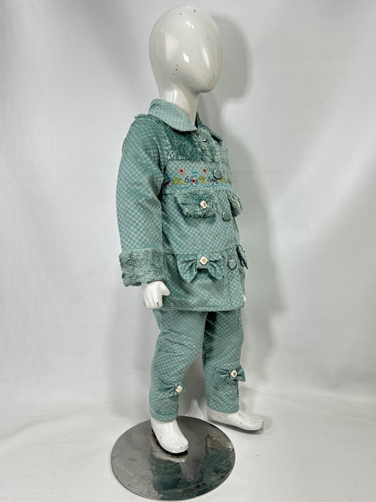 1Yr - 4Yrs Velour Green Suit For Girls RZ GS314