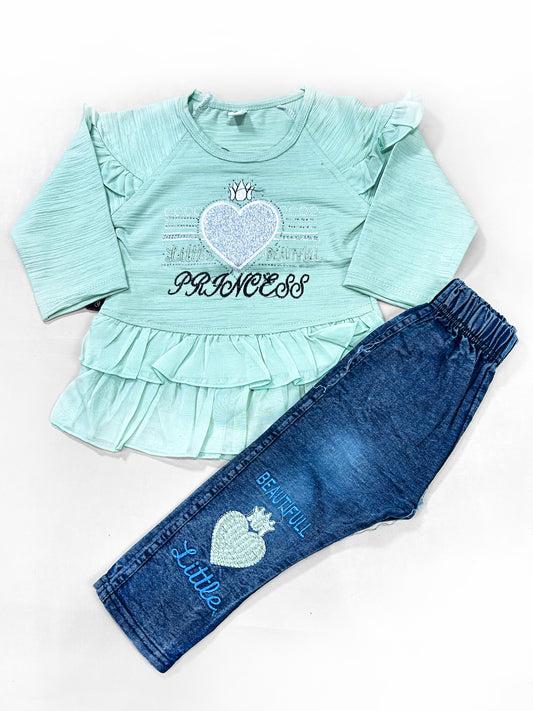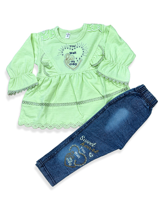 1Yr - 4Yrs Heart Light Green Suit For Girls SF GS275