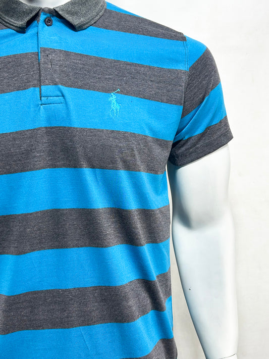 Bright Blue Striped Polo T-Shirt For Men MTS268