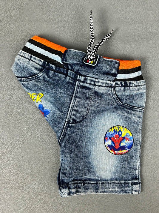 1Yr - 3Yrs Spiderman Light Blue Denim Shorts For Boys BCS08