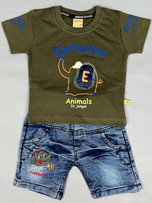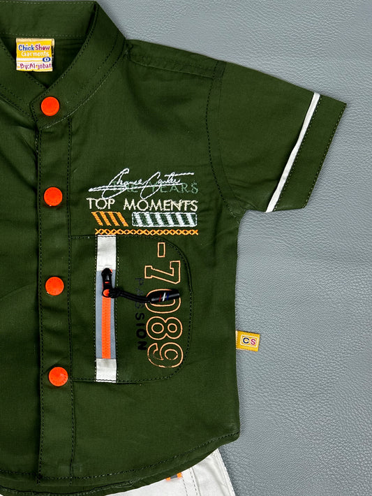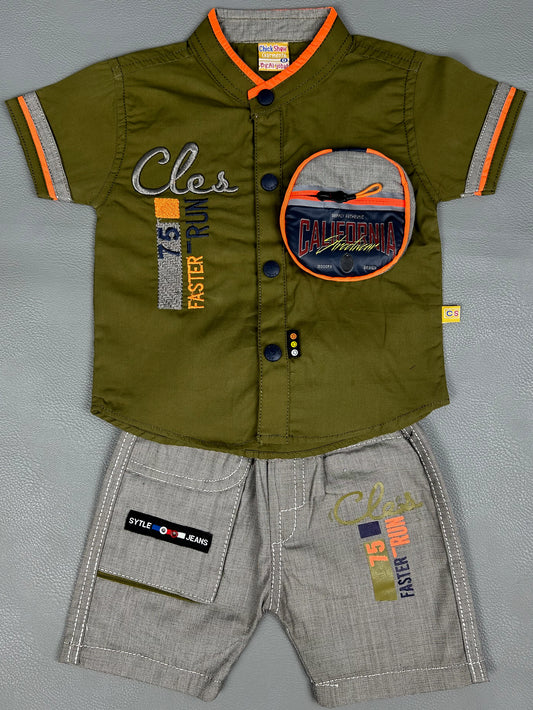 3Mth - 9Mth Jungle Olive Green Baba Suit For Newborns AJ NBS401