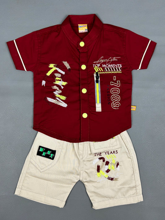 3Mth - 9Mth Moments Dark Maroon Baba Suit For Newborns AJ NBS399