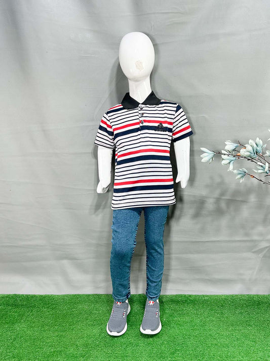2Yrs - 7Yrs White Stripes T-Shirt For Boys SG BTS120