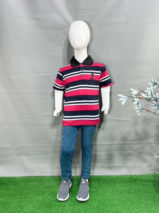 2Yrs - 7Yrs Pink Stripes T-Shirt For Boys SG BTS121