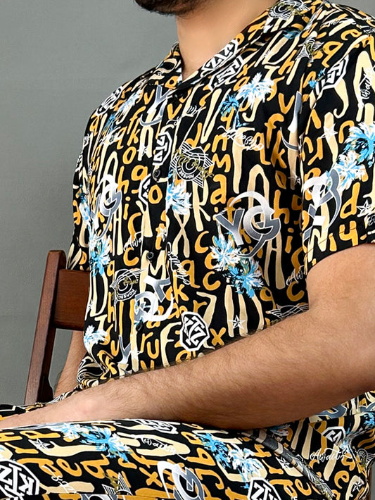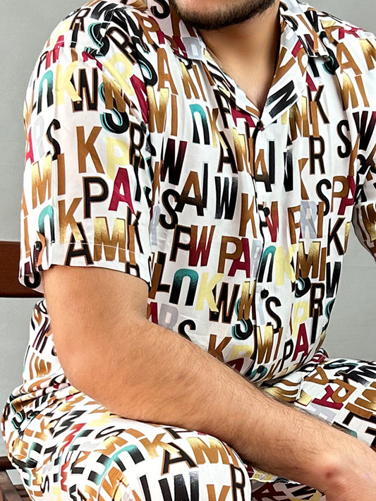 Alphabet Printed Linen Co-Ords Set For Men MTS