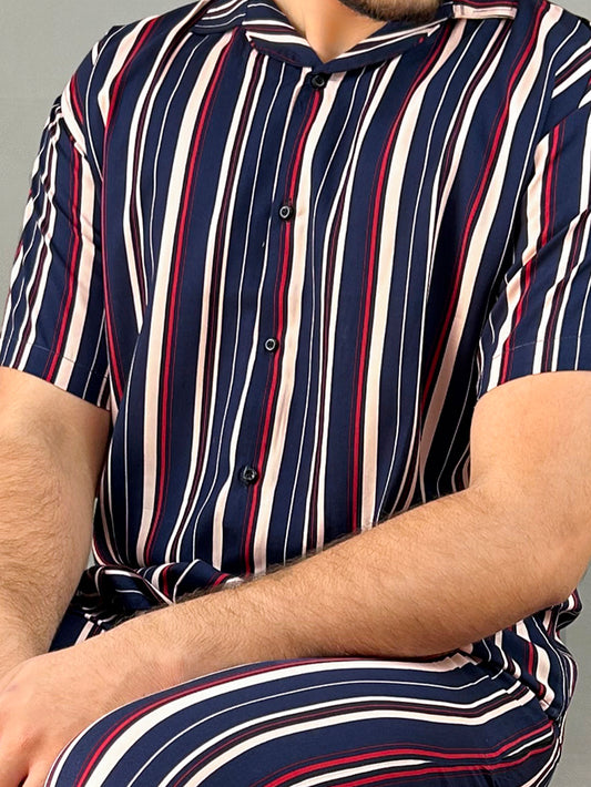 Slate Blue Striped Linen Co-Ords Set For Men MTS