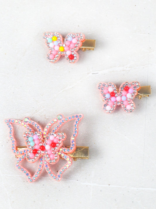 Pack Of 3 Butterfly Pink Hair Clips For Girls GHC47