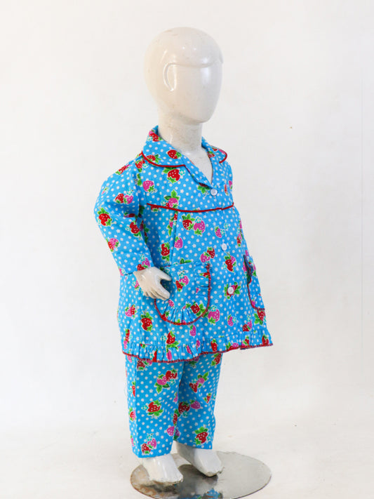 1Yrs - 5Yrs Blue Strawberry Full Sleeves Cotton Night Suit For Girls NG GNS05