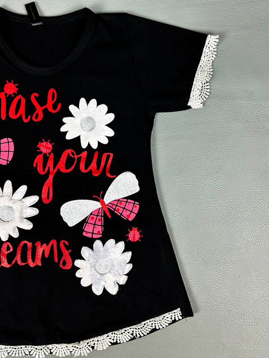 2.5Yrs - 7Yrs Dreams Black T-Shirt For Girls TB GTS25