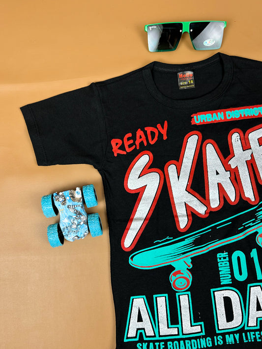 4Yrs - 9Yrs Skate Black T-Shirt For Boys BTS33