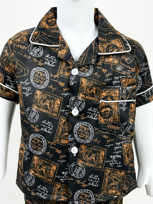 1Yrs - 5Yrs Printed Black Cotton Night Suit For Kids NG BNS10
