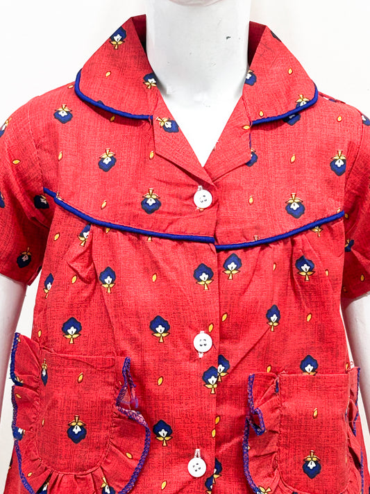 1Yrs - 5Yrs Red Cotton Night Suit For Girls NG GNS13
