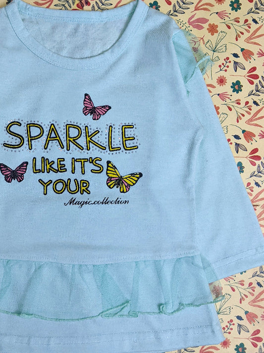 2Yrs - 7Yrs Sparkle Light Blue T-Shirt For Girls SK GTS15
