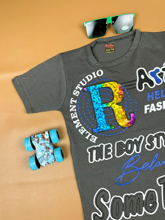 4Yrs - 9Yrs Style Dark Grey T-Shirt For Boys BTS46