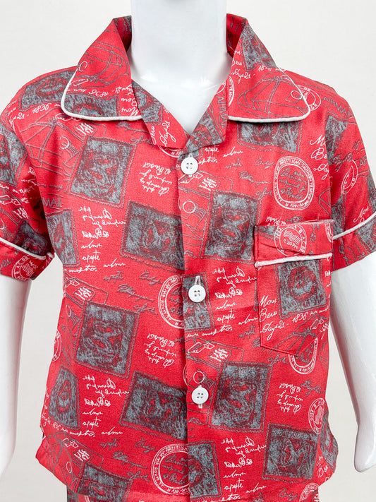 1Yrs - 5Yrs Printed Red Cotton Night Suit For Kids NG BNS09