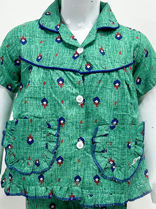 1Yrs - 5Yrs Green Cotton Night Suit For Girls NG GNS11