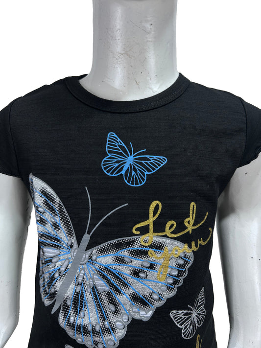 2.5Yrs - 7Yrs SK Betterfly Black T-Shirt For Girls GTS64