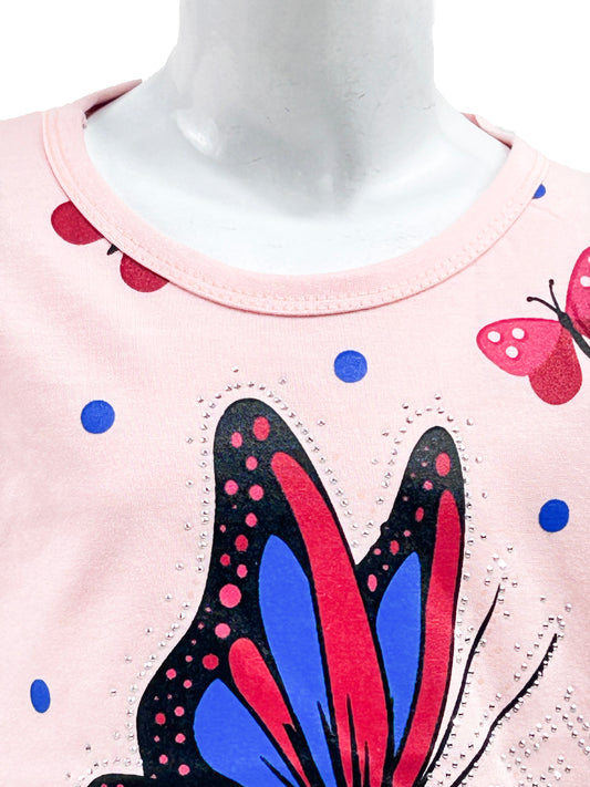 2.5Yrs - 7Yrs TB Butterfly Light Peach T-Shirt For Girls GTS57