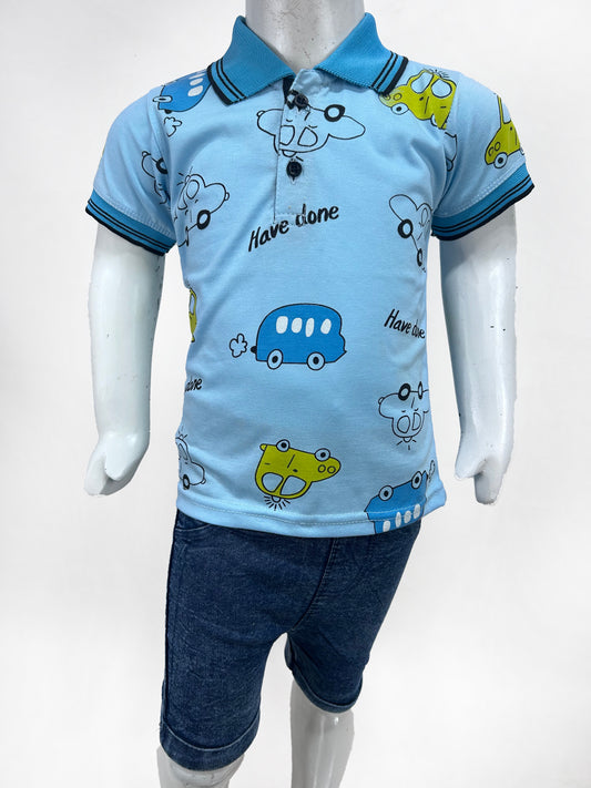 1Yr - 4Yrs Kids Suit Embossed Polo Ferozi RZ BS446