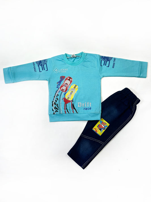 1Yr - 4Yrs Kids Suit Printed Drifted Car Ferozi RZ BS452