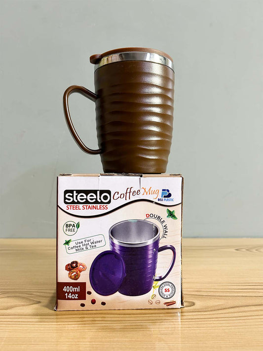 Brown Stainless Steel Coffee Mug With Cap - 400ML CM48