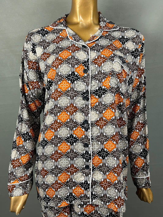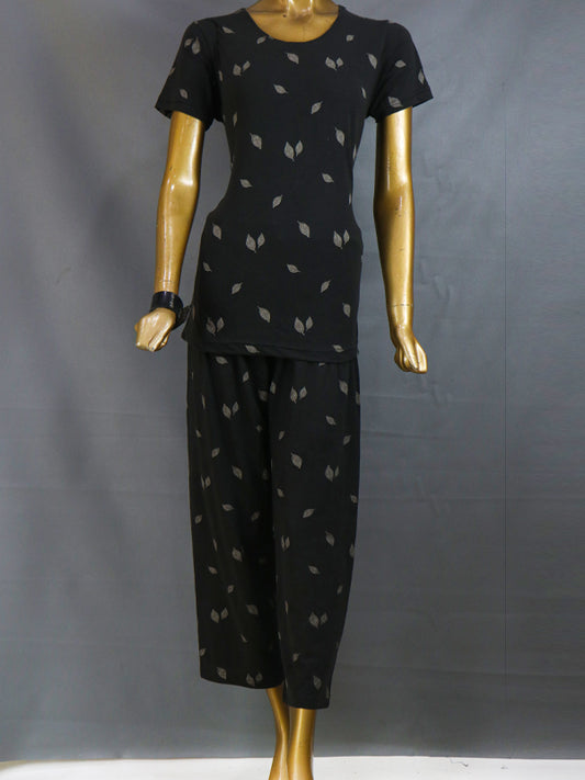 Navy Blue Linen Printed Night Suit For Women WNS12